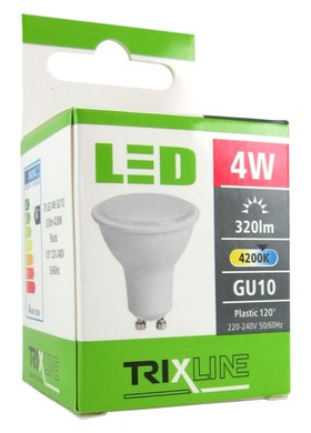 4W LED žárovka s paticí GU10. Nahrazuje 30W klasickou žárovku.