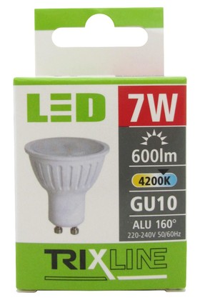 7W LED žárovka s paticí GU10. Nahrazuje 55W klasickou žárovku.