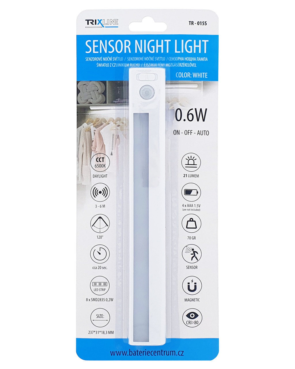 do skříně, na police, rám postele, schodiště, pod kuchyňskou linku apod. Napájeno pomoci 4xAAA mikrotužkových alkalických