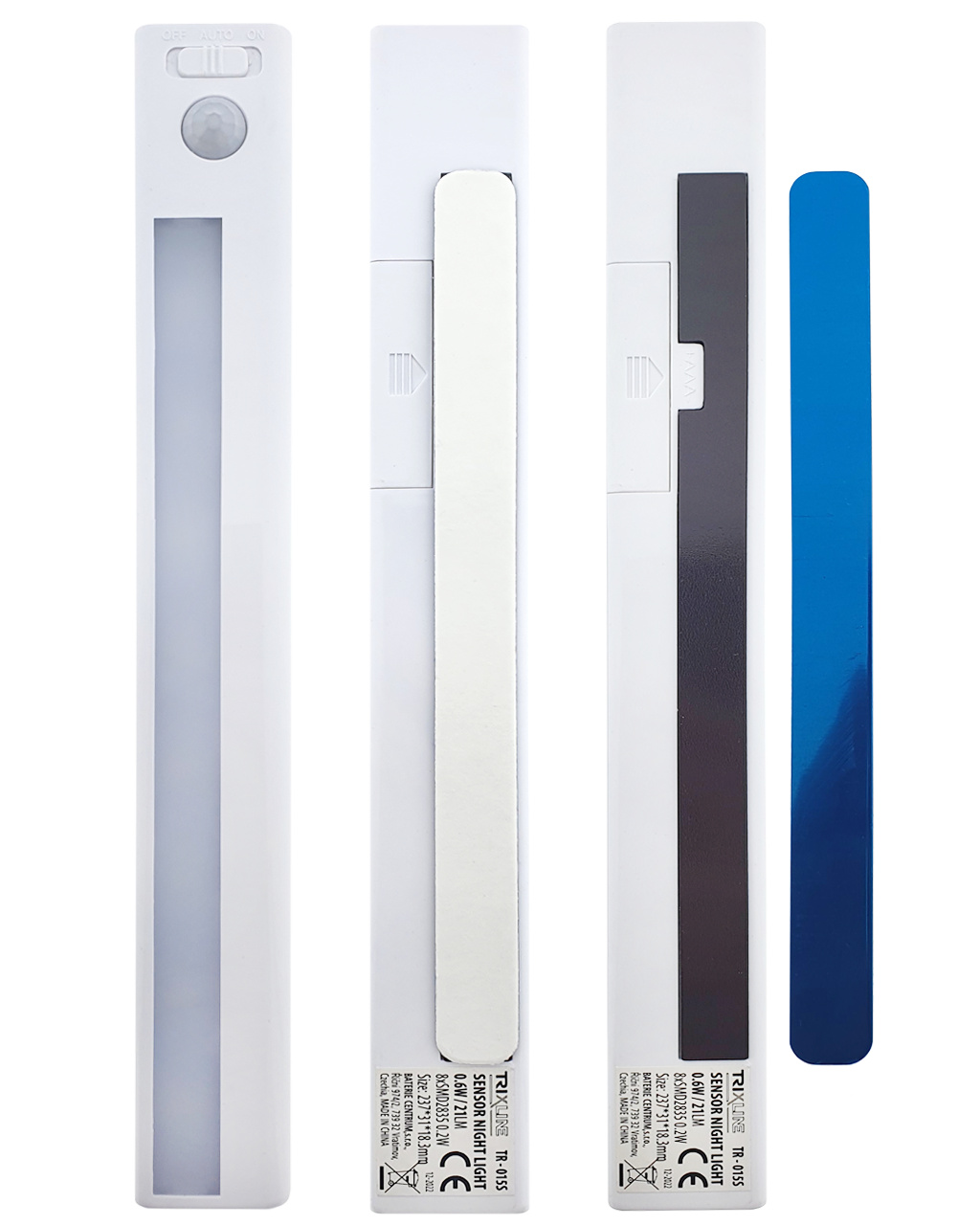 Automatické rozsvícení světla funguje pouze ve tmě. Nezapne se pod jasným světlem a ve dne. Na zadní straně jsou 2 magnetické