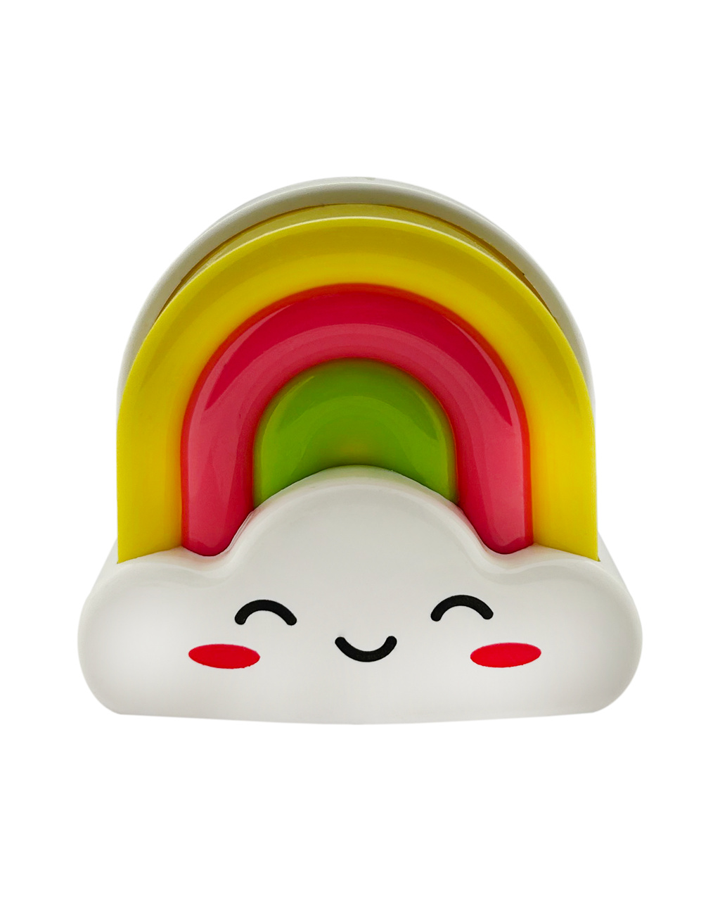 každodenní použití. Tvar žluto-růžovo-zelené duhy s usmívajícím se obličejem na bílém obláčku potěší každé dítě a dodá prostoru