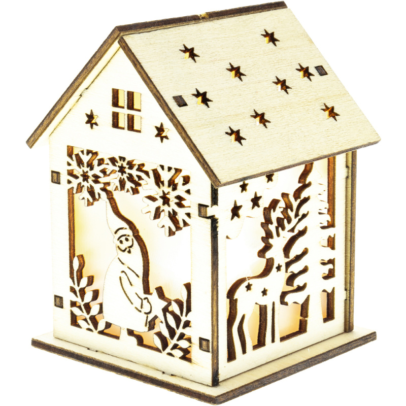 ◆ Vánoční dekorace - domeček s jelenem a skřítkem.