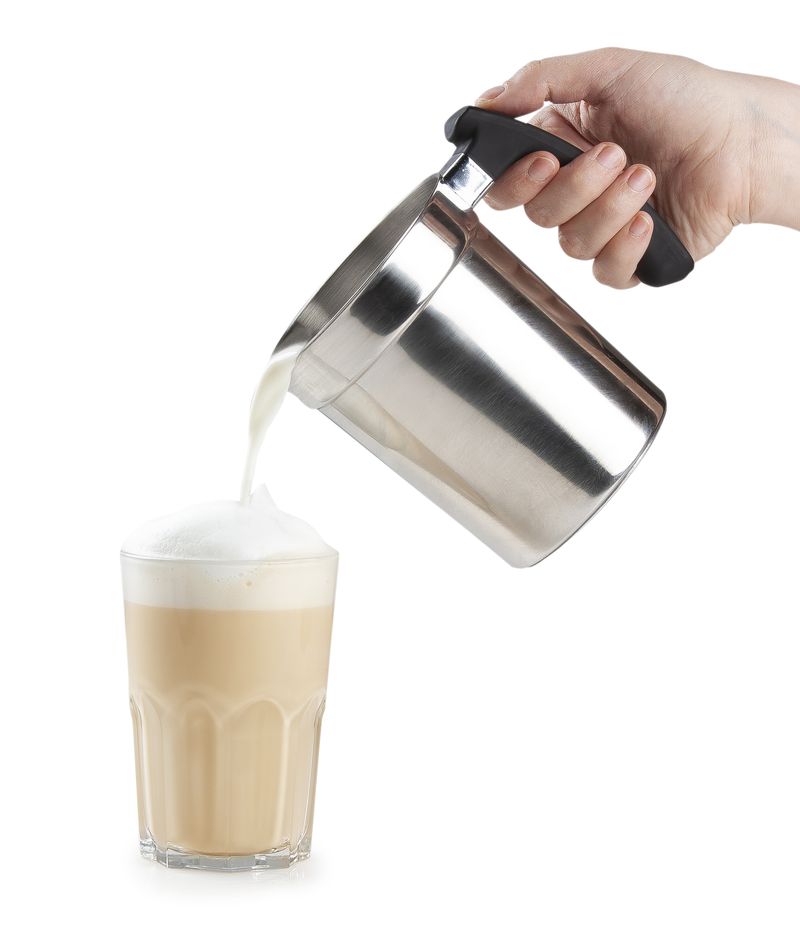 Konvička napěňovače je vyrobena z kvalitního nerezu a svým kompaktním designem, nízkou hmotností a především
