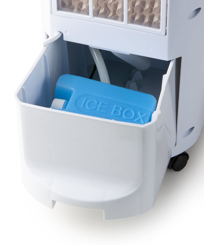 Ochlazovač vzduchu funguje na principu ochlazování vzduchu vodní lázní. Do zásobníku na vodu nalijete co nejstudenější vodu,