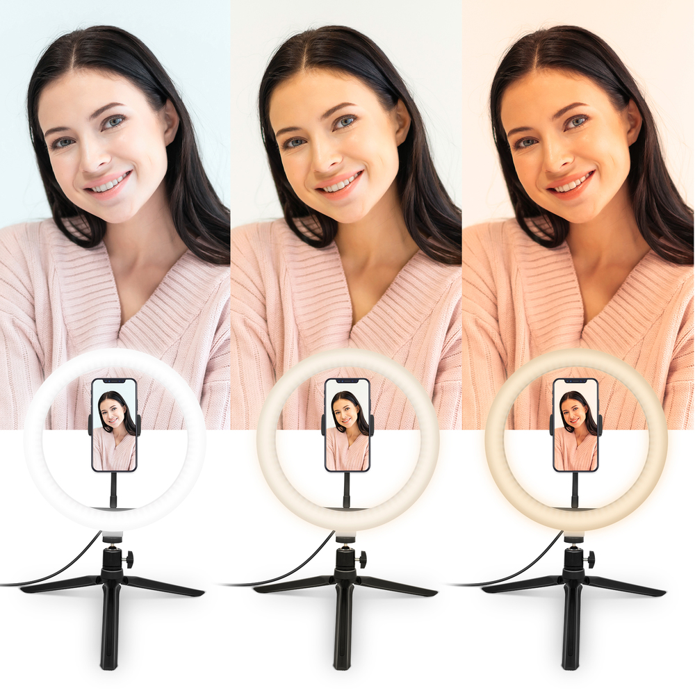 Universální držák je vhodný pro mobilní telefony až do šírky 80mm. Kruhové LED osvětlení o průměru 10"" a nastavitelný