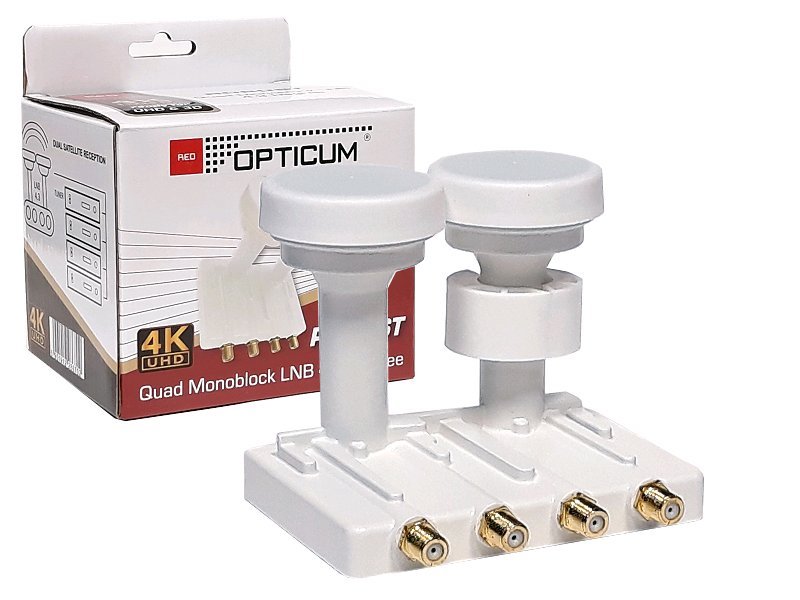 Univerzální monoblock quad konvertor určený pro příjem platformy Skylink ze dvou družic (ASTRA 19,2°E a ASTRA 23,5°E). Výstup pro připojení čtyř satelitních přijímačů.