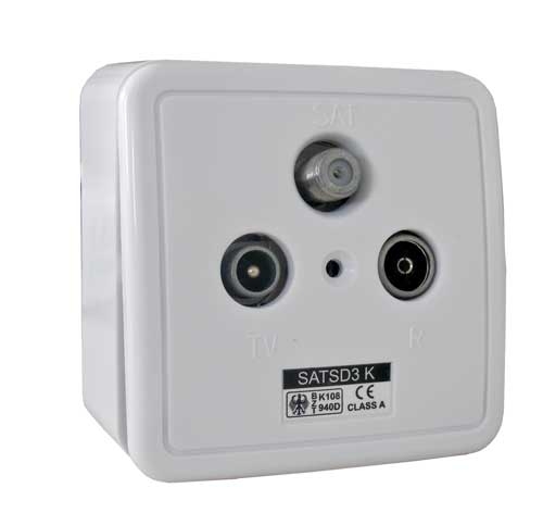 Kvalitní koncová satelitní účastnická zásuvka s krabičkou a víčkem.