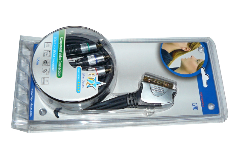 - Komponentní (Y,Cb,Cr) video kabel 1xSCART <-> 3xRCA pro video zařízení s vysokými nároky na věrnost přenosu signálu např. LCD nebo Plasma TV.