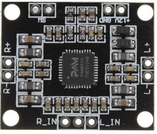 ◆ Stavebnice zesilovače ve třídě D 2x 15W, modul sestavený s PAM8610. (M423)