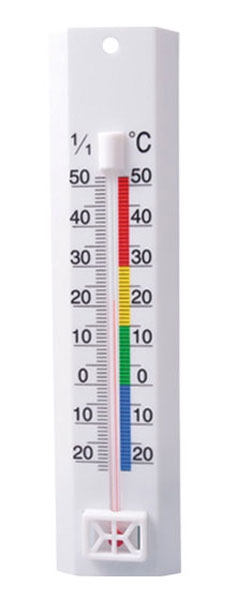 ◆ Vnitřní/venkovní teploměr v plastové provedení.