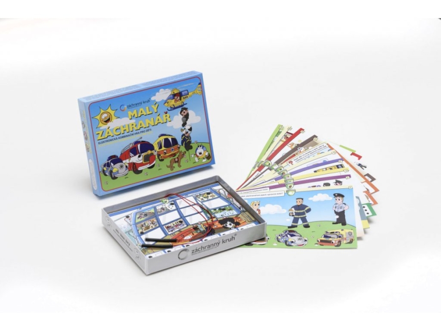 Obsahuje elektronický zkoušecí obvod a 16 listů s úkoly, díky kterým se děti seznámí se záchranáři.