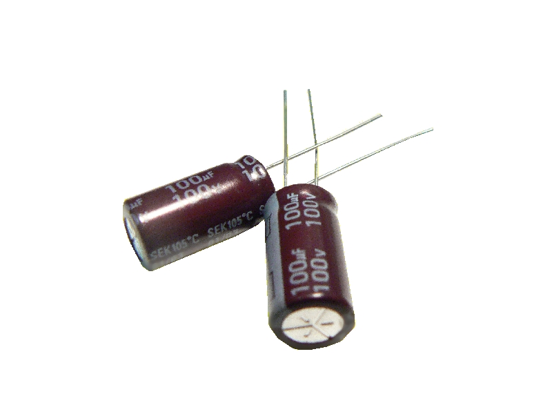 ◆ Elektrolytický kondenzátor 100uF/100V 105°C, rozměry: 10x25mm.