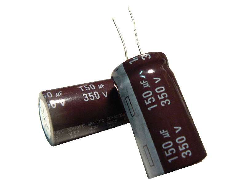◆ Elektrolytický kondenzátor 150uF/350V 105°C, rozměry: 20x40mm.