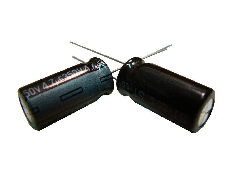 Elektrolytický kondenzátor 4,7uF/350V 105°C, rozměry: 8x20mm