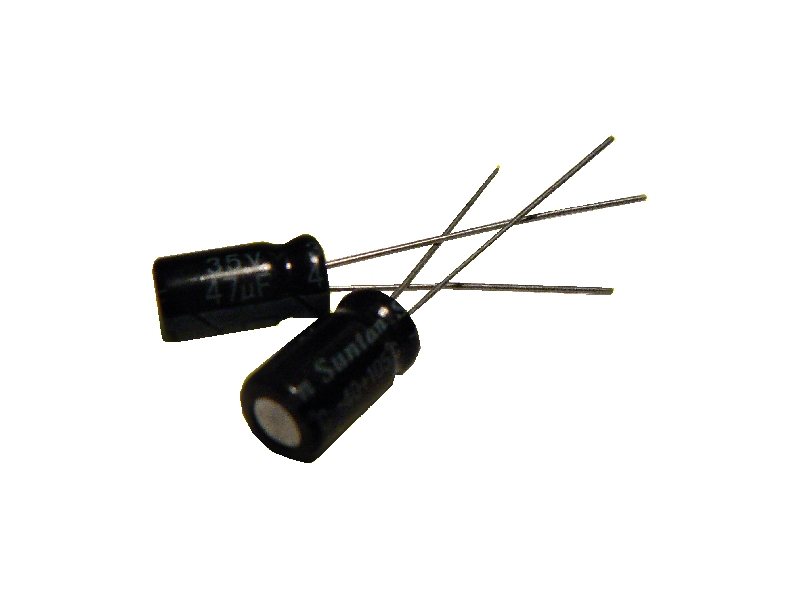 Elektrolytický kondenzátor 47uF/35V 105°C, rozměry: 6x11mm
